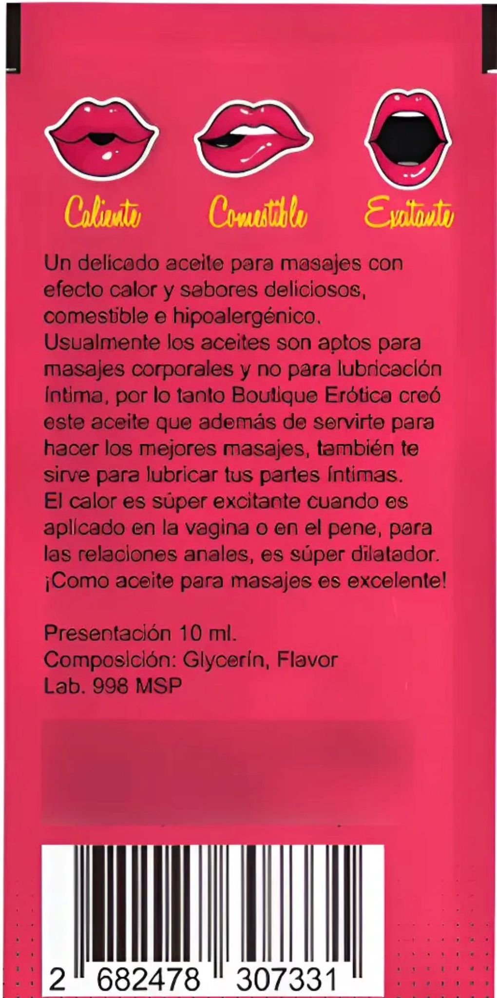 Su fórmula suave y deliciosa es comestible e hipoalergénica, ideal tanto para masajes corporales como para la lubricación íntima. A diferencia de otros aceites tradicionales, este gel está pensado para ofrecer una experiencia completa: desliza, hidrata y estimula al mismo tiempo.